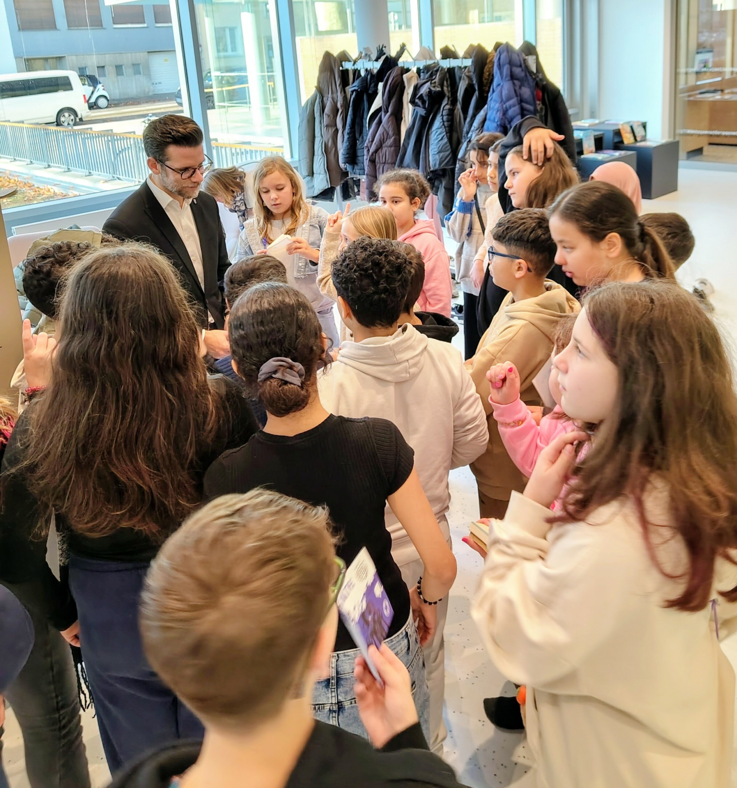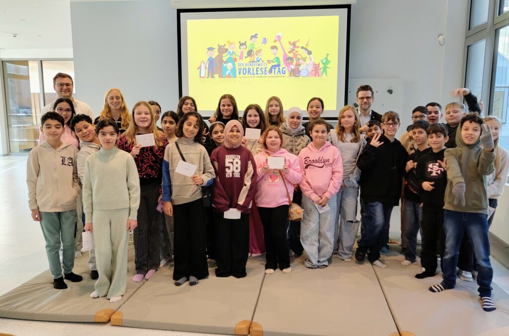 Am 21.11.2025 durfte die Klasse 5d einen ganz besonderen Vormittag in der Stadtbibliothek Mönchengladbach erleben. Zum bundesweiten Vorlesetag las Oberbürgermeister Felix Heinrichs den Schüler*innen eine mitreißende Geschichte vor. Im Anschluss erzählte er auch mit viel Begeisterung von seinem Alltag als Stadtoberhaupt. Die Schüler*innen stellten neugierig ihre Fragen – und Herr Heinrichs nahm sich großzügig Zeit, jede einzelne zu beantworten. Ein warmherziger Austausch, der der 5d noch lange in Erinnerung bleiben wird.