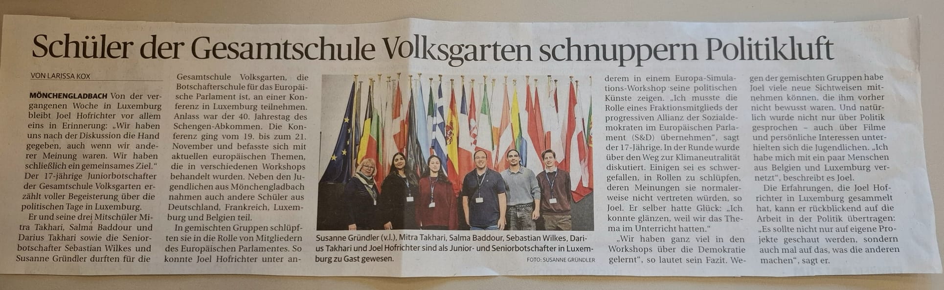 Am 7.11. waren wir - die Botschafter*innen und der Projektkurs Europa von Herrn Puts bei MdEP Jens Geier (SPD) aus Essen eingeladen. Am 8.11. konnten wir am Rollenspiel zur Gesetzgebung im Europäischen Parlament teilnehmen. Bericht |