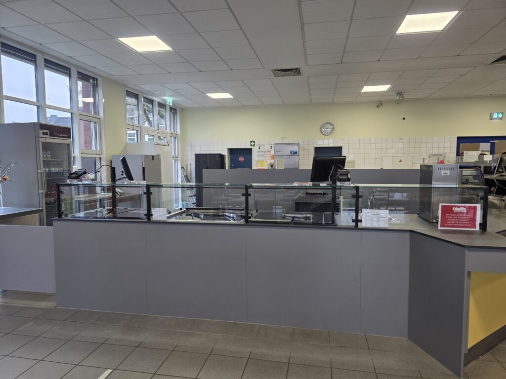 Neben belegten Brötchen und Laugenstangen gibt es auch anderes leckeres und gesundes Essen. Außerdem gibt es die Möglichkeit, Getränke zu kaufen. In der ersten Woche ist der Kiosk von Dienstag bis Donnerstag in der Zeit von 9-12 Uhr geöffnet.